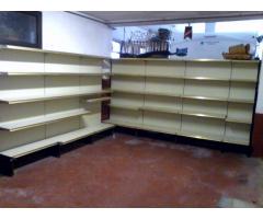 Scaffalatura usata per negozi circa 7mt lineari sorretta da piantoni a elle verniciati di colore marrone scuro